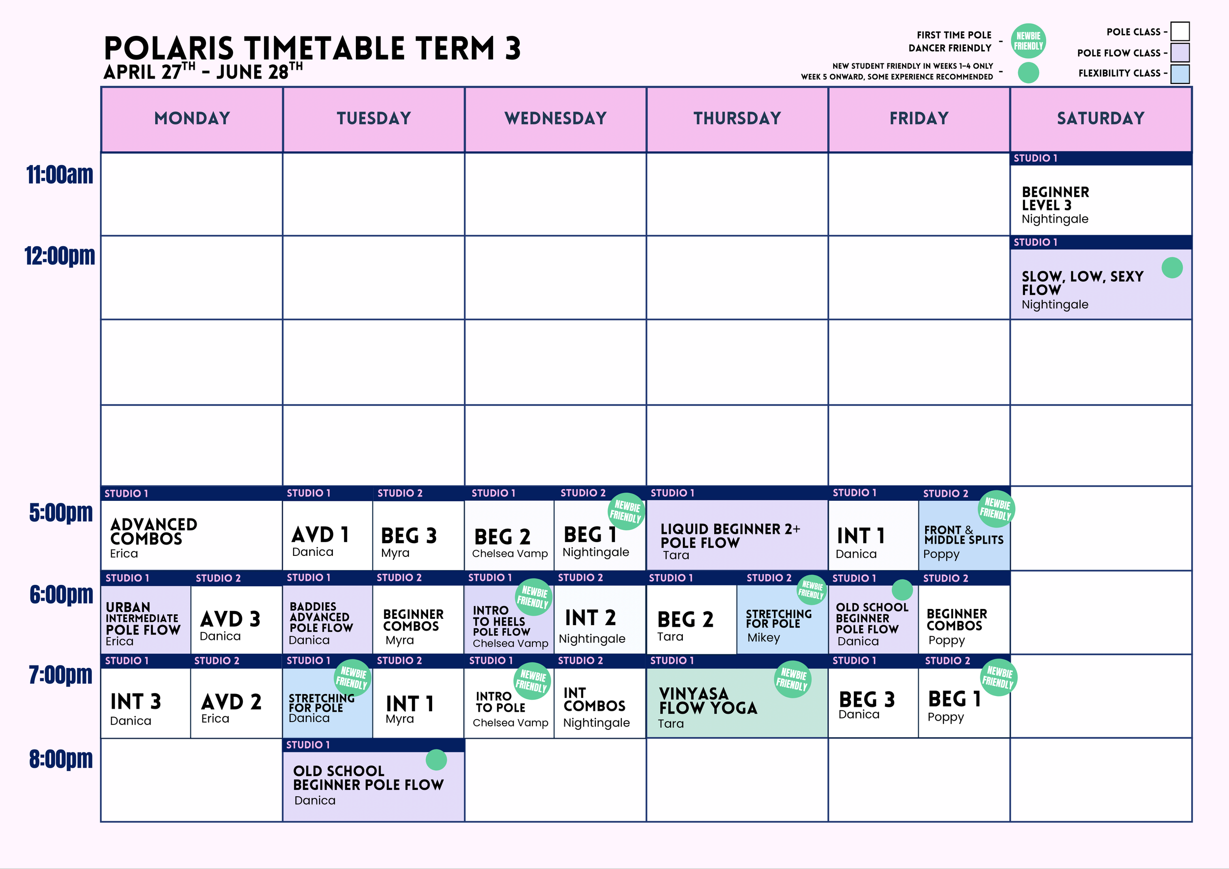 You can use the timetable below to book into classes.